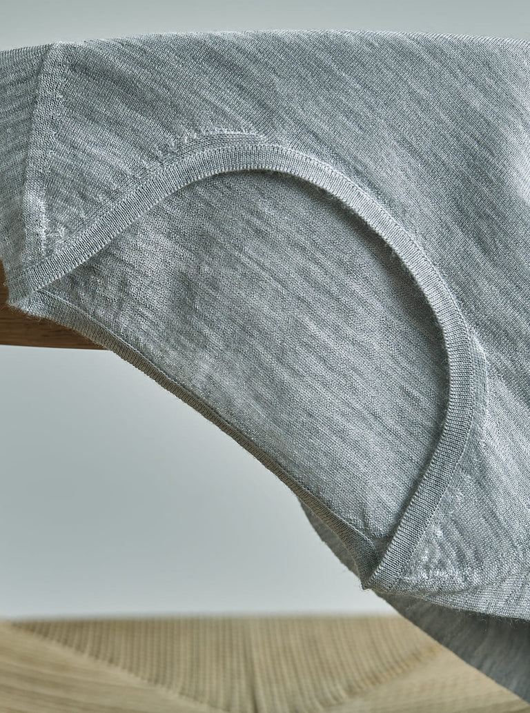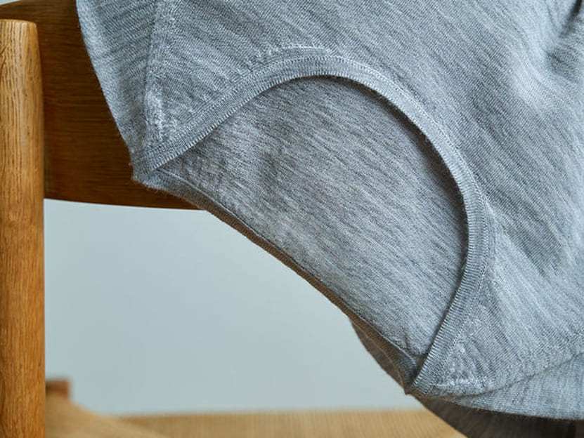 ボトムスは裾、股下の縫い目がなく肌当たりに優れた肌着に。