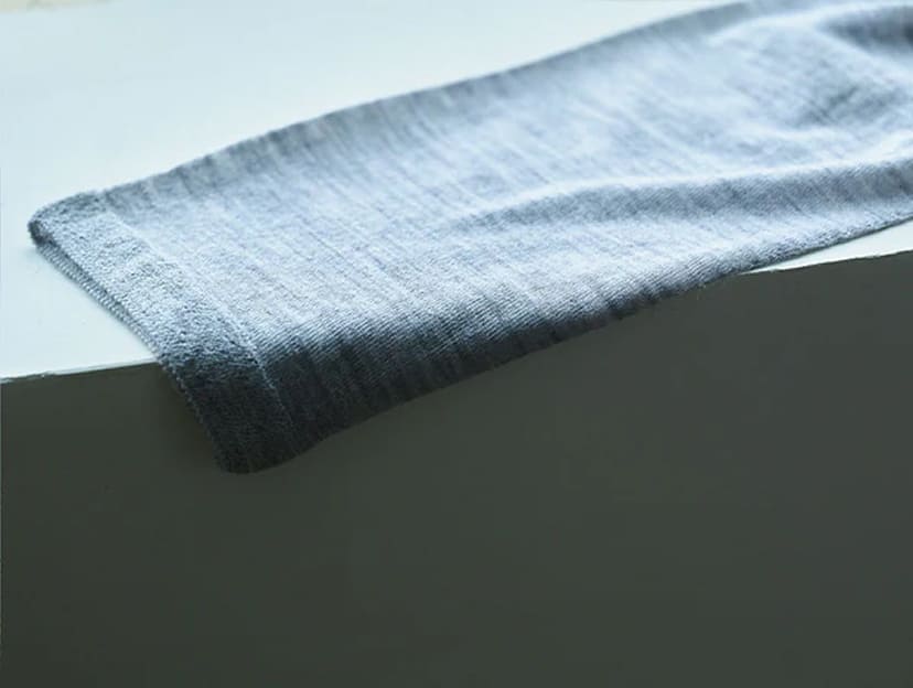 ホールガーメント®︎は、縫い目がないので、ごわつかずストレスフリーな着心地。立体的に編み上げられるため、体に自然となじみ、包み込まれるような着心地です。