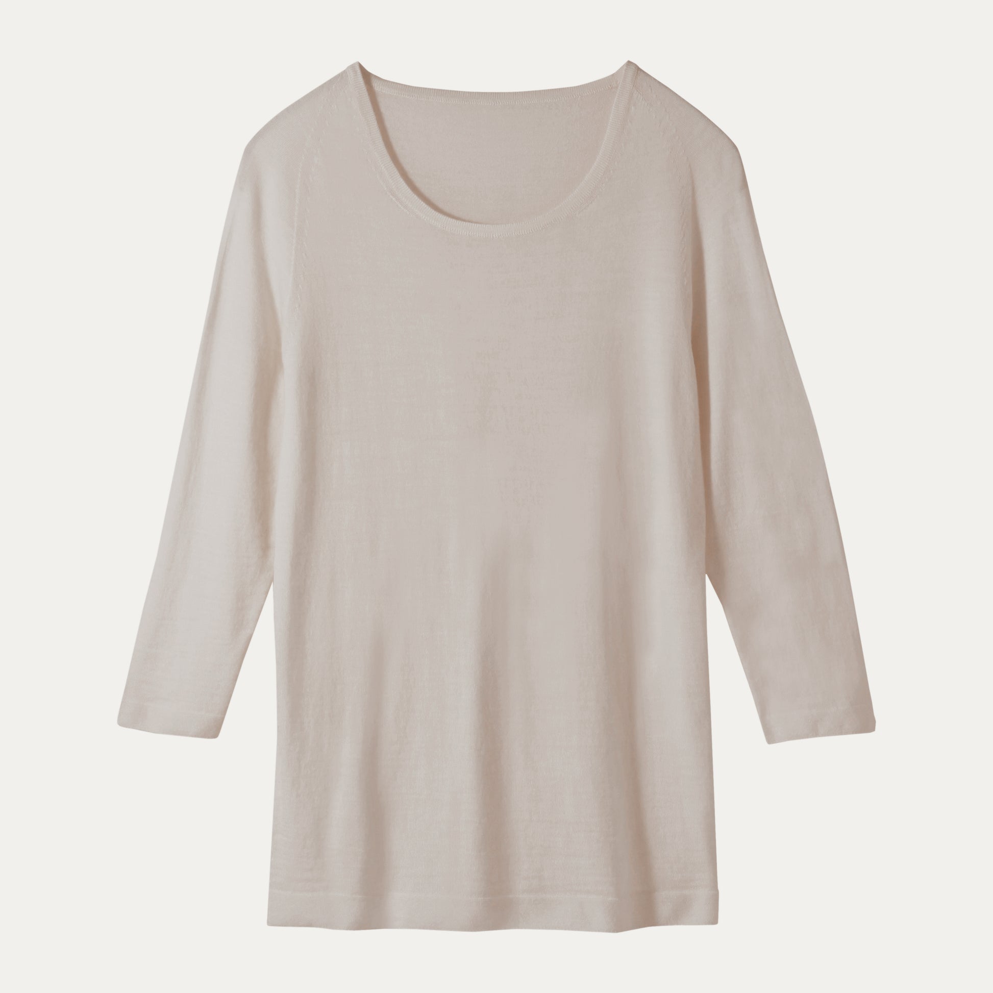 17.5マイクロンという最も細いランクに位置する超極細繊維のスーパーファインメリノウールを使用。シワができにくい糸を使用し、更に編立後に細かくシワを取る加工をしているため上質な肌ざわりの逸品。